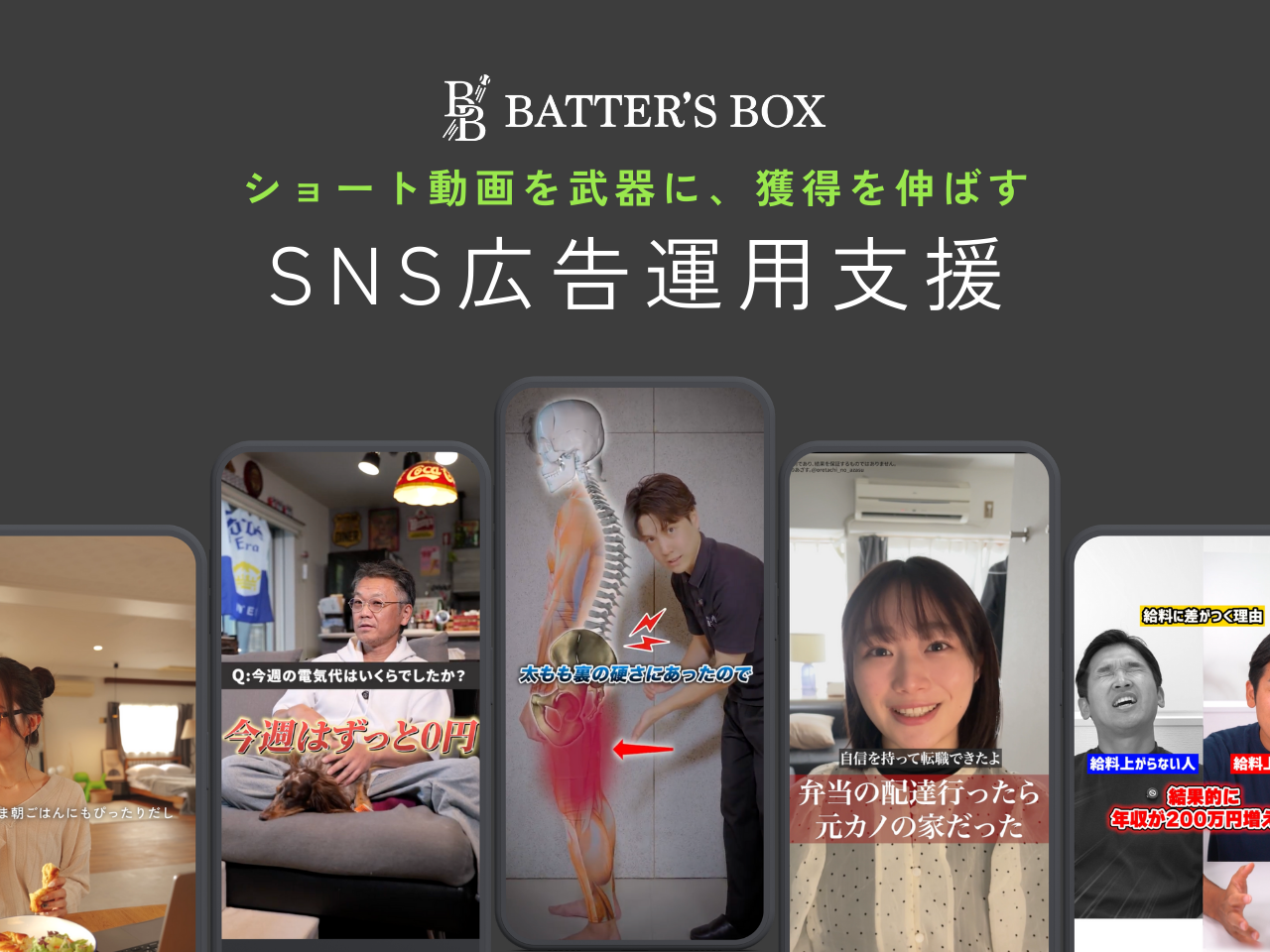 【BATTER'S BOXの面白さ】 ① 広告なのに、SNSで「見たくなる動画」をつくる 私たちがつくるのは、広告っぽくない広告。SNS上で自然と手が止まり、思わず見続けてしまう動画を研究・制作しています。広告動画だけでなく、国内外のSNSで伸びている動画を日々分析し、50種類以上の動画フォーマットを武器にクリエイティブの「幅」で勝負しています。