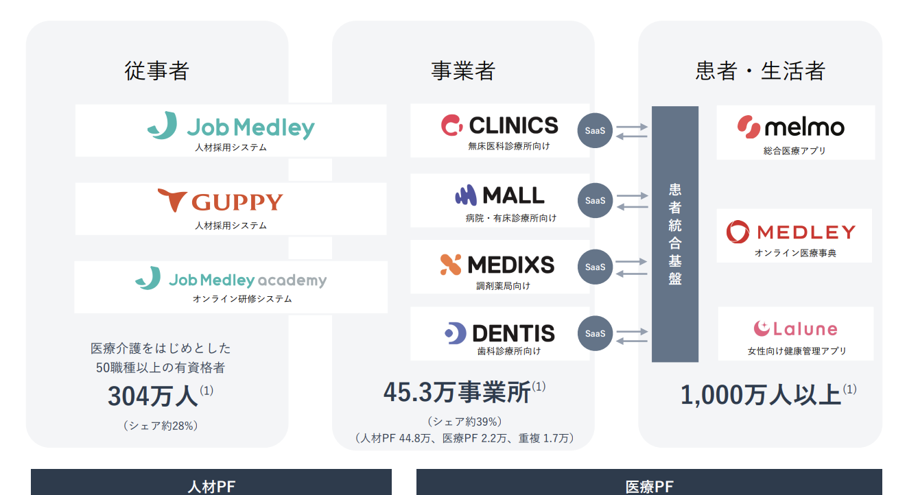こうした課題に対し、メドレーはテクノロジーの力で医療ヘルスケア領域の課題解決に取り組んでいます。