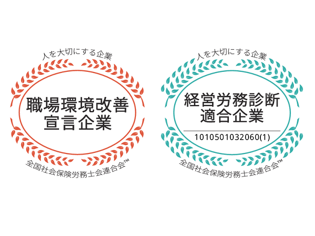 当社は、「人」 を大切にする企業として職場環境をよりよく改善し、従業員の働きやすい環境づくりを目指しています。コンプライアンスの遵守や職場環境の改善に積極的に取り組み、企業経営の健全化を進める企業として、社会保険労務士会から認定も受けています。
