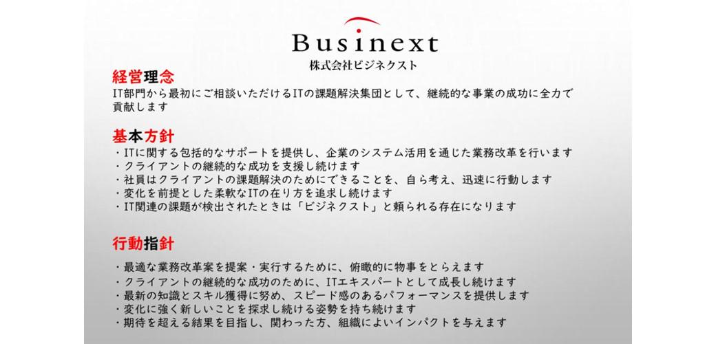 ビジネクストはコスト削減や業務の利便性向上、効率化、セキュリティー等、顧客が直面するは様々な問題にITの観点から、強力にサポートすることをミッションにし、