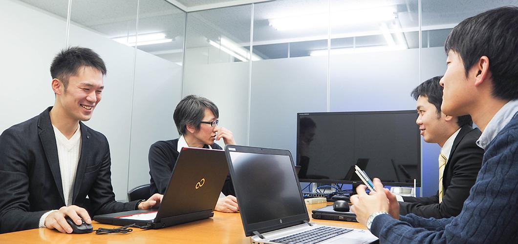 プロジェクトごとにエンジニアがチームを組んで仕事を行う。さまざまな人と関わり合いながら仕事をする中で、技術力はもちろん、コミュニケーション能力や折衝能力、マネジメント能力などが自然と身につく。経験や年齢に関わらず意欲次第でチャンスをつかむことができ、新卒入社2年目のメンバーがSEとして上流工程から参画している例もある。