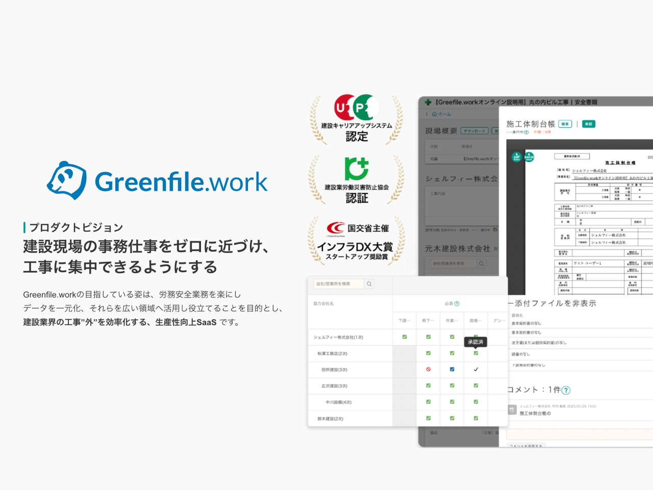 ■ 工事”外”の事務作業を効率化する 生産性向上 BtoB SaaS『Greenfile.work』