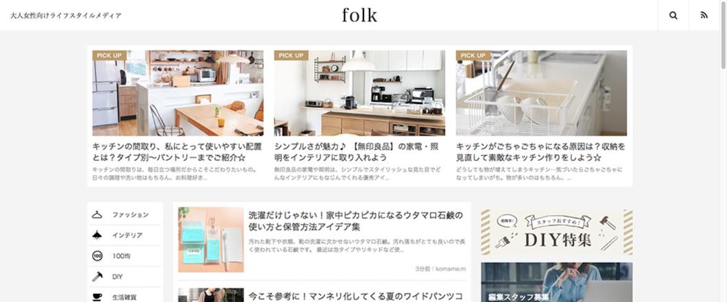 『folk』は30~40代女性がをターゲットとする女性向けWebメディア。