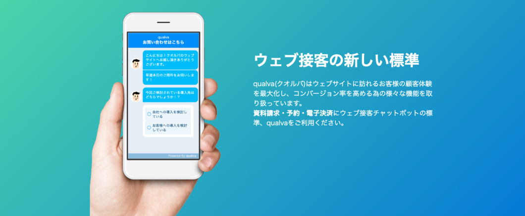 qualvaは資料請求・予約・電子決済などに使えるWeb接客チャットボットで、Webサイトを訪れたユーザーの顧客体験を最大化し、コンバージョン率を高める点に特化しているのが特徴。