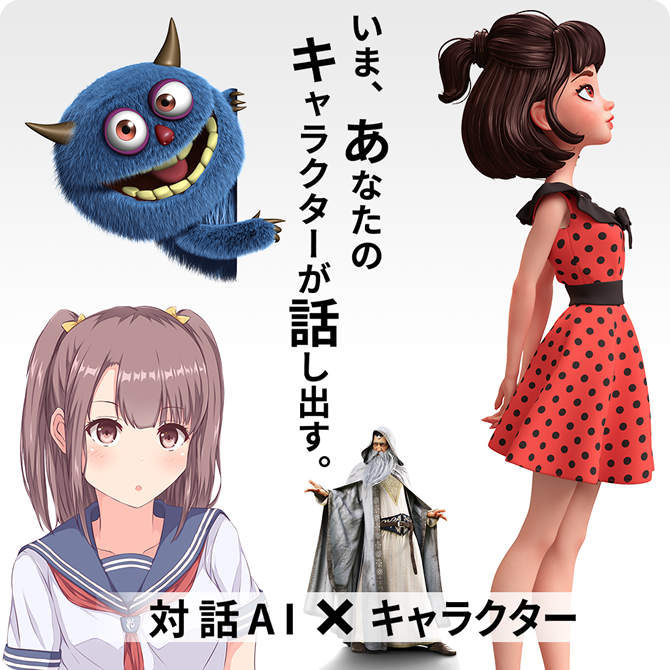 当社はAI、自然言語処理と3DCG技術に強みを持つ「バーチャルヒューマン・カンパニー」として高度な対話AI及び、3DCGを用いたバーチャルヒューマンを独自開発し個人・法人のお客様に提供しています。