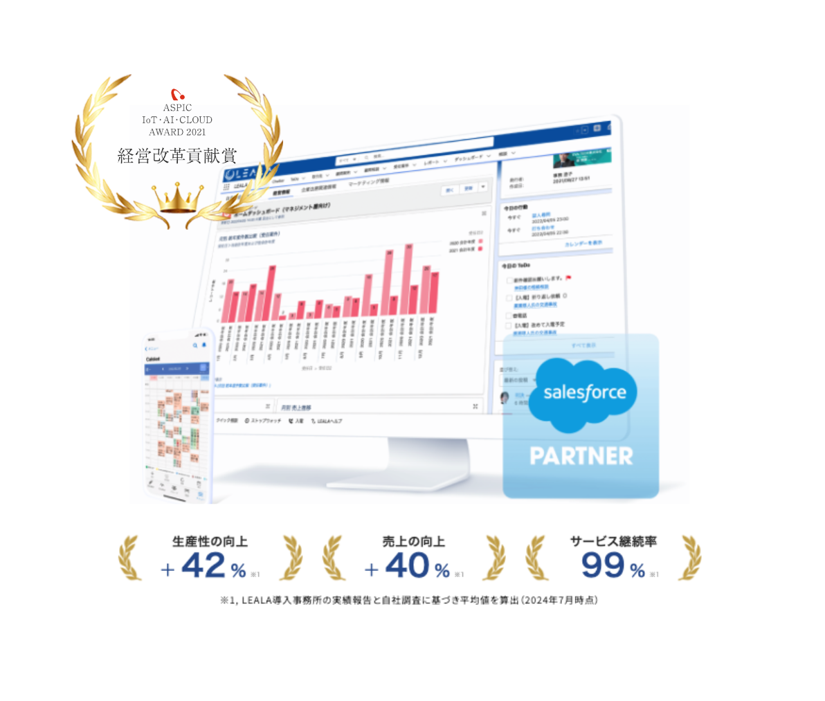 当社は、顧客・案件管理システムにおいて国内外の世界シェアがNO.1であるSalesforceを基盤として、プロダクトを開発しています。案件・顧客・会計・ファイル・タイムチャージ・分析など、法律事務所の業務管理に必要な機能をオールインワンのプラットフォームとして提供しています。