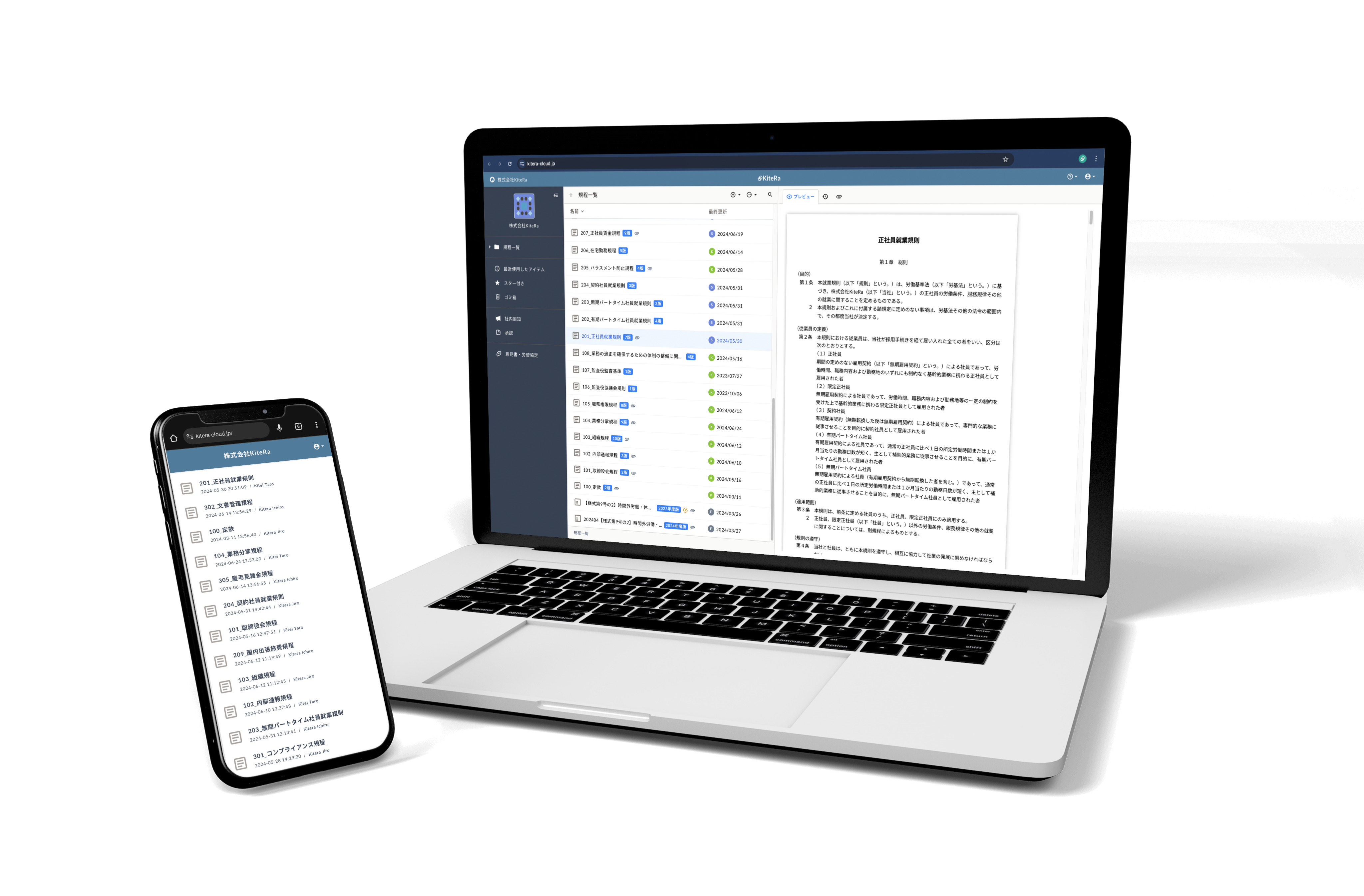 就業規則や社内規程をWeb上で簡単に作成・管理運用できるSaaS「KiteRa」