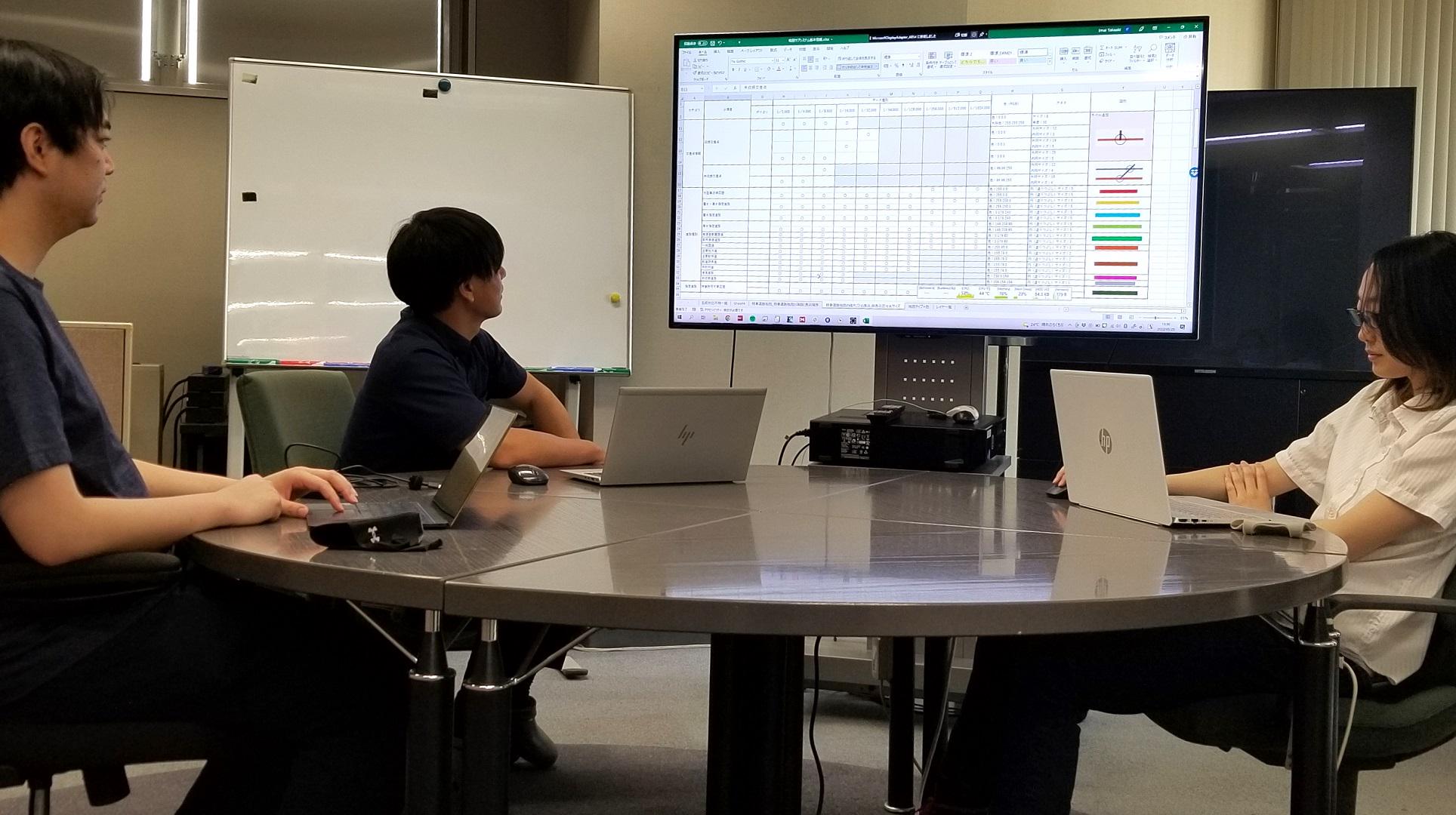 「入社後は地図描画の流れや座標等のGIS技術の基礎をはじめ、問題整理しながらロジカルに物事を考える力を伸ばせる課題を自前で用意し、私を含めこの道20年以上のベテランが1on1で指導します」(柳田氏)。