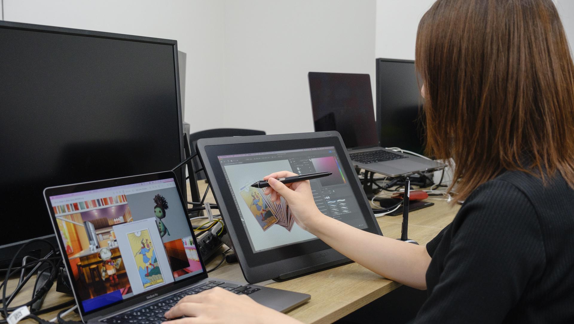 自分の主な業務は、ゲーム内のアート(イラスト、エフェクト、演出、UIなどのビジュアル全般)を監修し、絵作りによって作品の魅力を引き上げたり、世界観をつくりあげていく事です。自分自身でアートを描くこともあります。