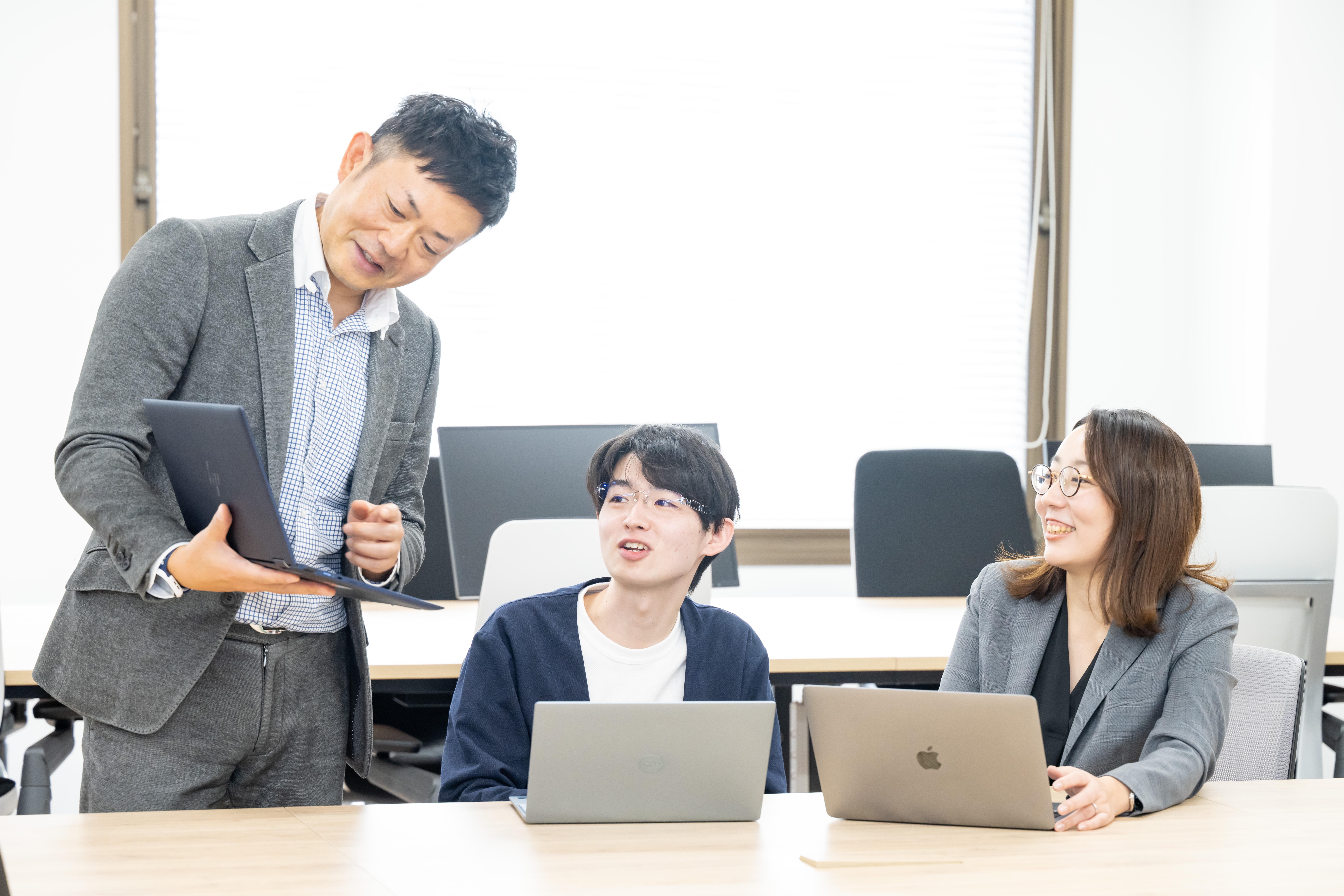 「本当に多種多様な人材が在籍していて、年齢層も、これまでのキャリア経験してきた業務も金融、システム、マーケティングと幅広いのが当社の特徴の一つ。当社の業務では多方面での経験や専門知識が必要となりますが、それらを全て有している人材は存在しません。だからこそ、それぞれの道のスペシャリスト達が議論し合い、お互いの専門領域の事柄を教え合いながら業務を進めているんです。そう考えると、当社のメンバー達はよく喋りますし、コミュニケーションを交わして様々なものを吸収しながら、事業を推進できる当社の仕事に面白味を感じていただけるのではないかと思っています。この環境があるからこそ、金融業界で数年の業務経験しかない若い人材にも、常に新しい体験をしていただけるはずです」(山口氏)。