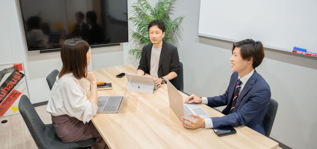 同社の社内に在籍するのは、コンサルタントとクライアントパートナー、プランナーの3職種だ。マーケティングやブランディングの戦略立案から全体のディレクション、チーム組成等を行いクライアントにおける取り組みを推進していくのがコンサルタント、クライアントとのリレーション窓口を担うのがクライアントパートナー、そしてメディアプランニングを主業務とするのがプランナーだ。クリエイティブ案件で発生する実作業(ディレクション、デザイン、写真撮影、コピーライティング、WEBサイト制作等)は全てプロフェッショナルな外部パートナーとのチーム体制で行っている。少数精鋭体制を取ることから、実際には一人が複数の役割を担うため、各自がクライアントやパートナー、メディアといった外部とコミュニケーションを取り、リーダーシップを発揮しながら、プロジェクトを推進している。