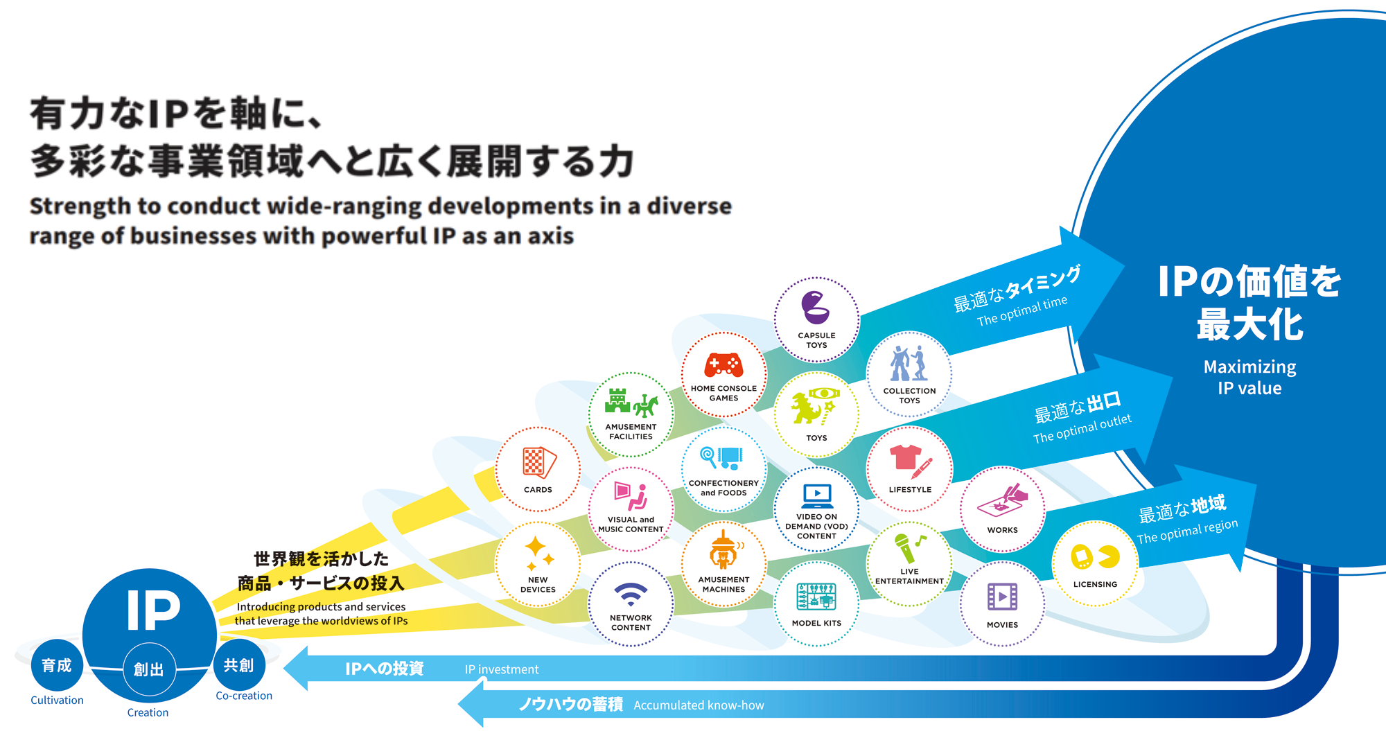 アニメーションを中心とした映像作品を企画・製作し、テレビ/映画/配信などさまざまなメディアを通してお届けするだけでなく、著作権・版権の管理運用、映像関連商品の企画・販売や映像関連サービスを通して、世界中の皆様に広く発信しております。映像の川上から川下まで担う総合映像エンターテインメント企業として、“いいもの”を生み出し、しっかりと皆様にお届けし続けてまいります。