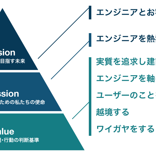 経営はエンジニアの笑顔が必要不可欠と考えており、経営判断も「エンジニアのモチベーション及びパフォーマンスの最大化を生み出すベクトルづくり」を最優先事項としています。