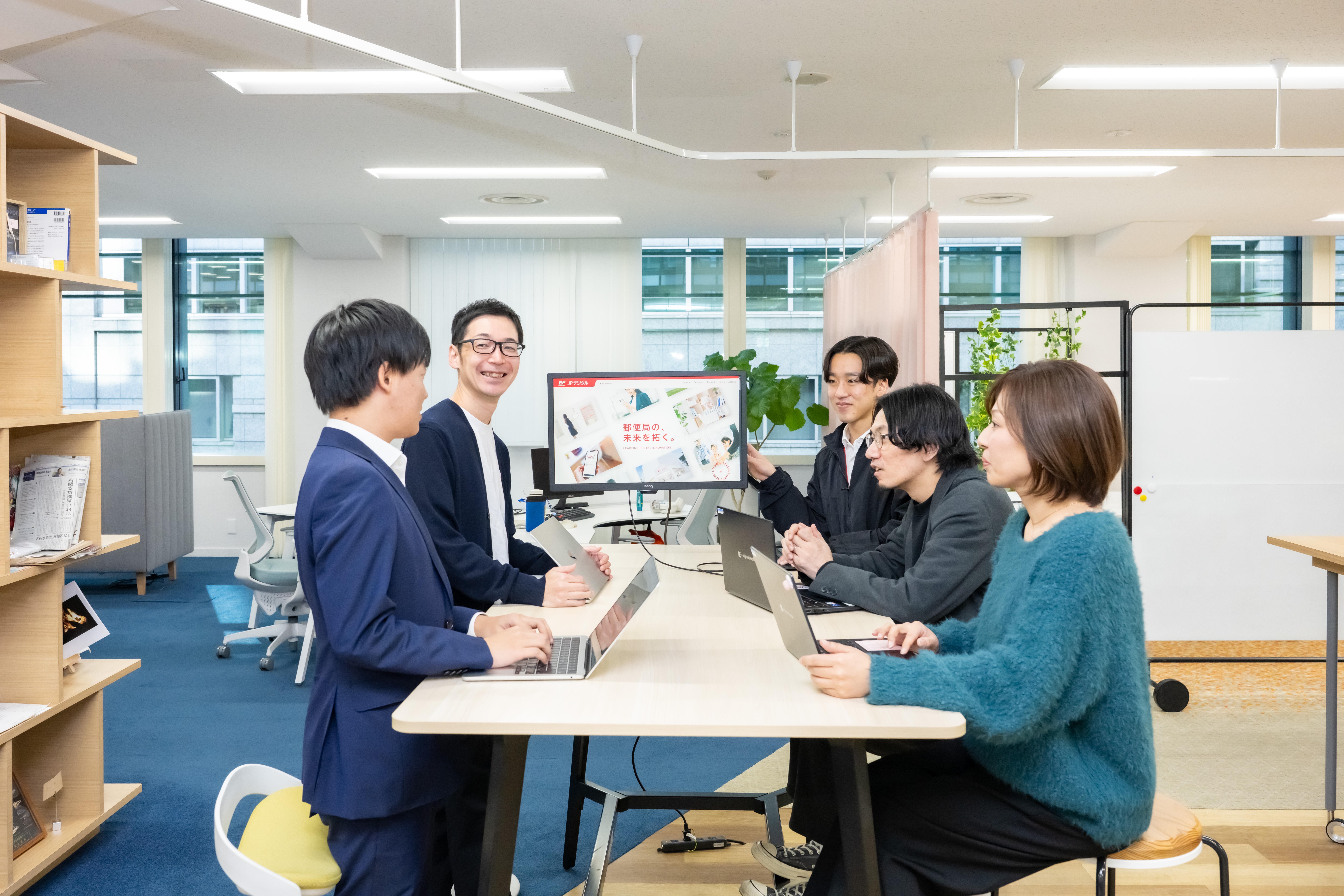 「みらいの郵便局」の実現に向け、UI/UX、データの分析、最新テクノロジー導入支援、デジタルマーケティング、DX人材育成の5つを軸に、日本郵政グループ内におけるDXを推進。リアルの郵便局ネットワークとデジタルを融合させ、お客さまの体験価値を徹底的に高める「顧客起点のDX」を体現していきます。